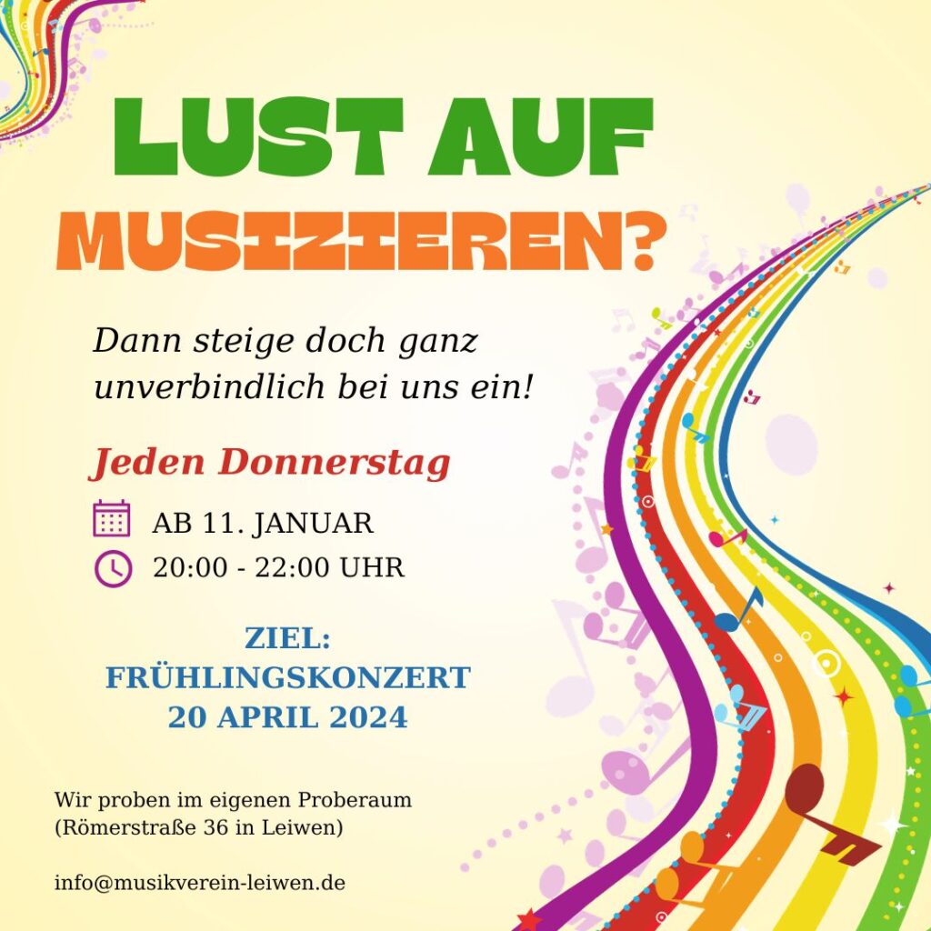 Sprich uns sehr gerne bei Fragen an – E-Mail info@musikvereinleiwen.de