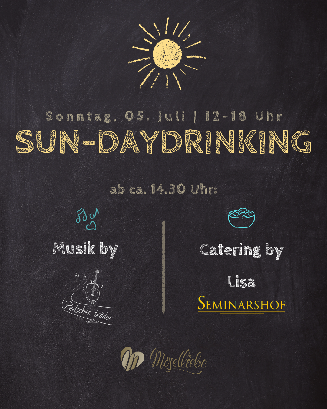 Am Sonntag, 5. Juli 2026 findet von 12 bis 18 Uhr das Sun Daydrinking im Moselliebe Weingarten statt.