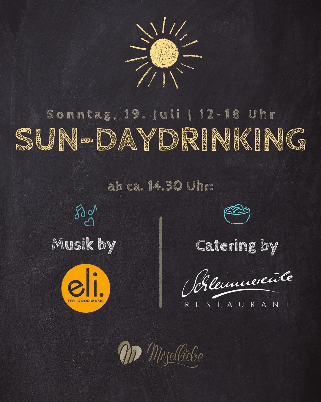 Am Sonntag, 19. Juli 2026 findet von 12 bis 18 Uhr das Sun Daydrinking im Moselliebe Weingarten statt.